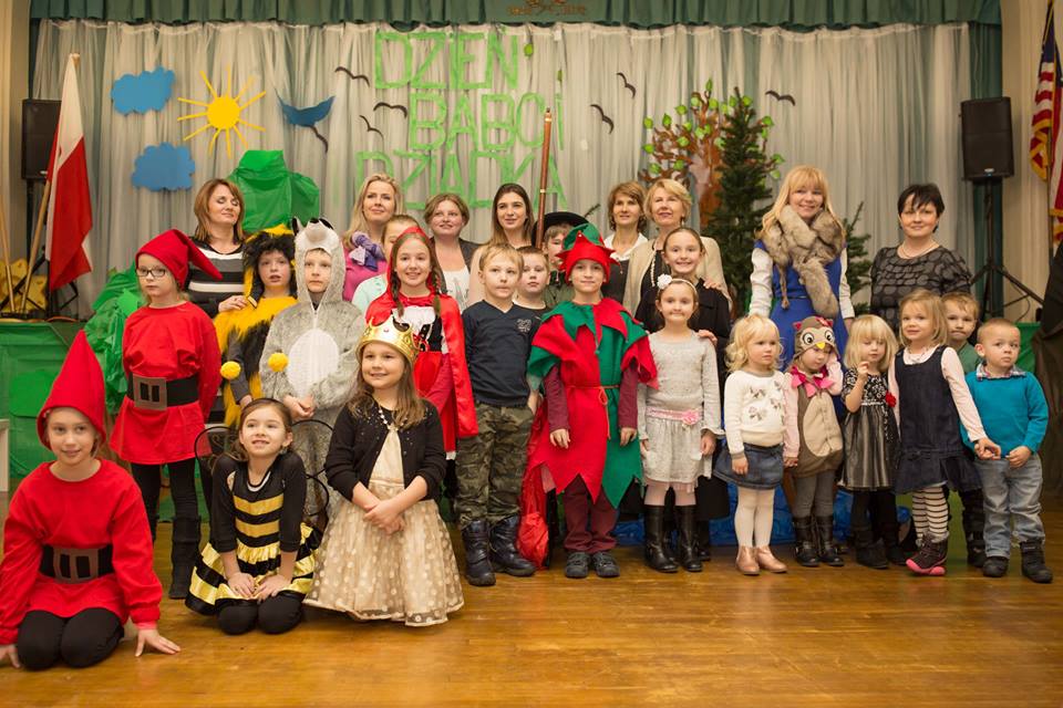 1/30/16 mieliśmy okazję oglądać, w pięknej scenerii (przygotowanej pod czułym okiem p. Karoliny), przedstawienie pt.: “ W krainie Czerwonego Kapturka”. Część artystyczną przygotowały przedszkolaki oraz kl. II i IV. Historia Czerwonego Kapturka została nieco zmodyfikowana. Nie było w niej złego wilka. A jedynie dobry mały wilczek (odegrany przez Sebastiana Drężka ucznia kl. IV). A Czerwony Kapturek ( w tę rolę wcieliła się Vanessa Bryk, także uczennica kl. IV) zaprzyjaźnił się z wilkiem. Bawiąc się z nim i chowając w lesie Czerwony Kapturek spotyka różnych bajkowych bohaterów: Krasnale wędrujące do pracy, pszczółkę Maję i Gucia, Królewicza zaklętego w żabkę, Królewnę, Rybaka ze złotą rybką, smoka i Gajowego – pilnującego porządku w lesie. A wszystko kończy sie jak w bajce – wesoło i radośnie.W przedstawienu udział wzięły mamy uczniów kl. IV, którym serdecznie dziękujemy i gratulujemy odwagi. Na zakończenie uroczystości z okazji Dnia Babci i Dziadka wystąpiły nasze kochane maluchy (po raz pierwszy uczestniczyli w apelu na duzej aulii), które pod czujnym okiem p. Grażynki przedstawiły wiersze J. Brzechwy oraz zaśpiewały uroczyste Sto Lat dla wszystkich Dziadków.